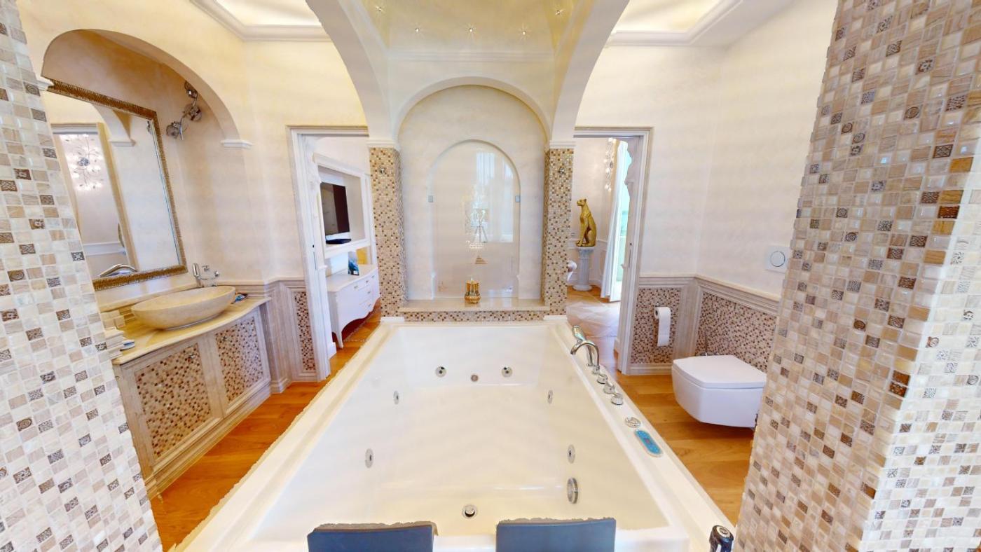 Superior Villa. This luxurious villa provides a private pool, a sauna and a fireplace. This spacious villa consists of 5 bedrooms, kitchen, a terrace and 4 bathrooms with a bath. Guests will find a refrigerator, a dishwasher, kitchenware and an oven in the well-equipped kitchen. The villa also offers a barbecue. This villa is air-conditioned and features a washing machine, a minibar as well as a balcony with lake views. The unit offers 5 beds.